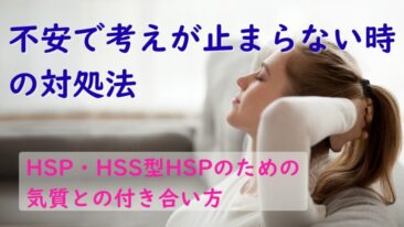 HSP・HSS型HSP HSP・HSS型HSPのための「不安で考えが止まらない時」|ぐるぐる思考の対処法 不安に駆られて考えるのが止められない…。そんなHSP・HSS型HSPのために、ぐるぐる思考との向き合い方と対処法を紹介します。考えすぎを責めず、やさしく距離をとるヒントをまとめました。 2025.09.11 2025.09.27 HSP・HSS型HSPセルフケア