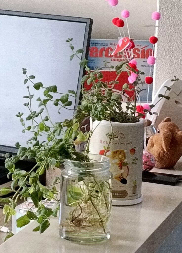 伸びすぎた茎を水にさしたら、それも元気に育ってます。